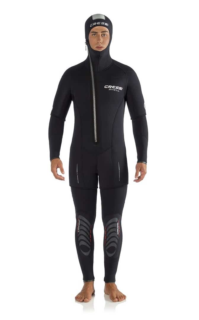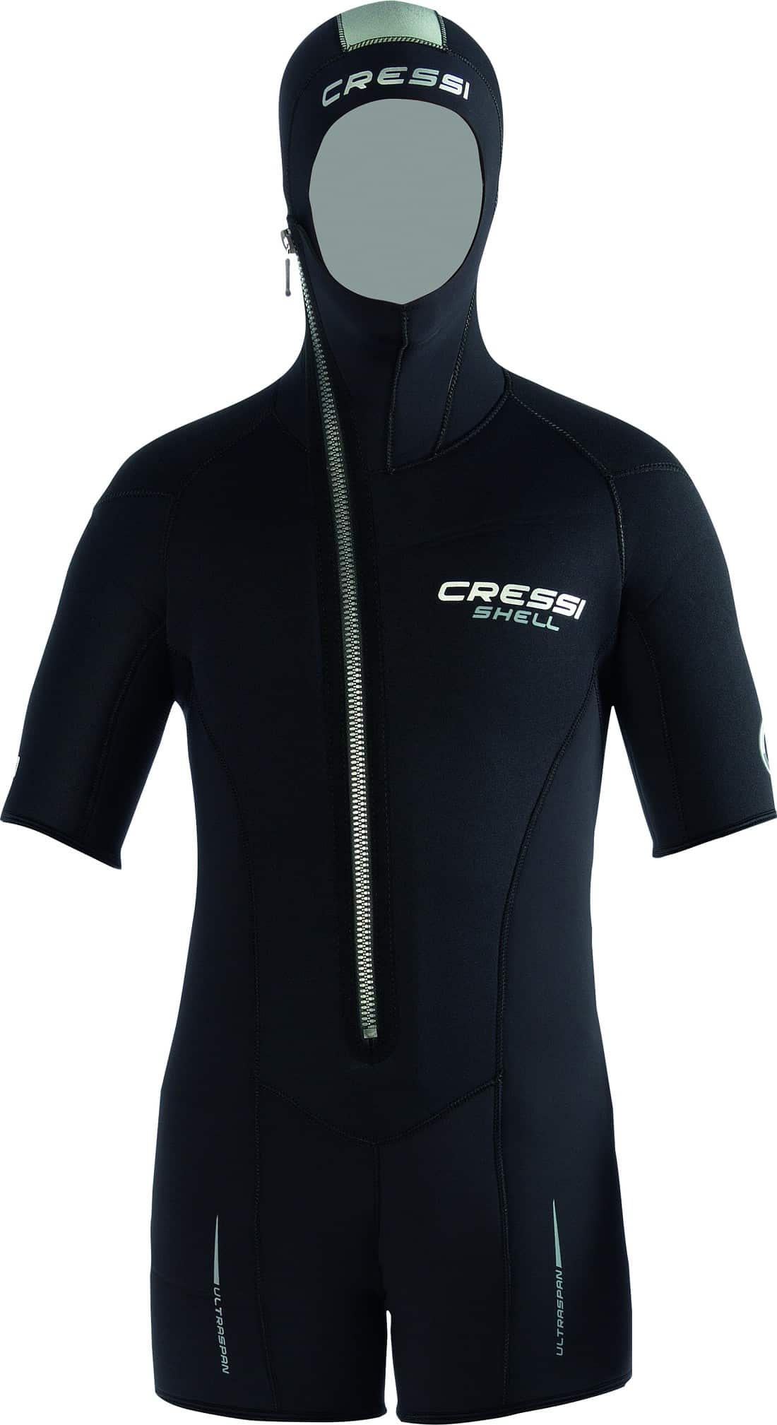 Cressi Shell Jacket är en shorty för att användas över befintlig våtdräkt vid kallare dykning. Tjockleken är 5mm på framsida och baksida och 3.5mm på vissa ställen för ökad rörlighet. Fast huva ingår.